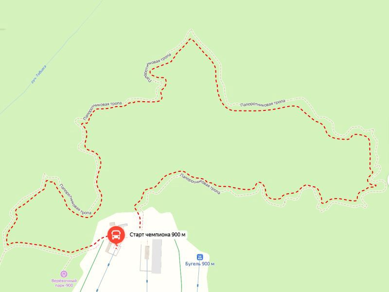 Маршрут начинается на Поляне 900 на нижней станции КД “Старт чемпиона”. Для ориентира:
